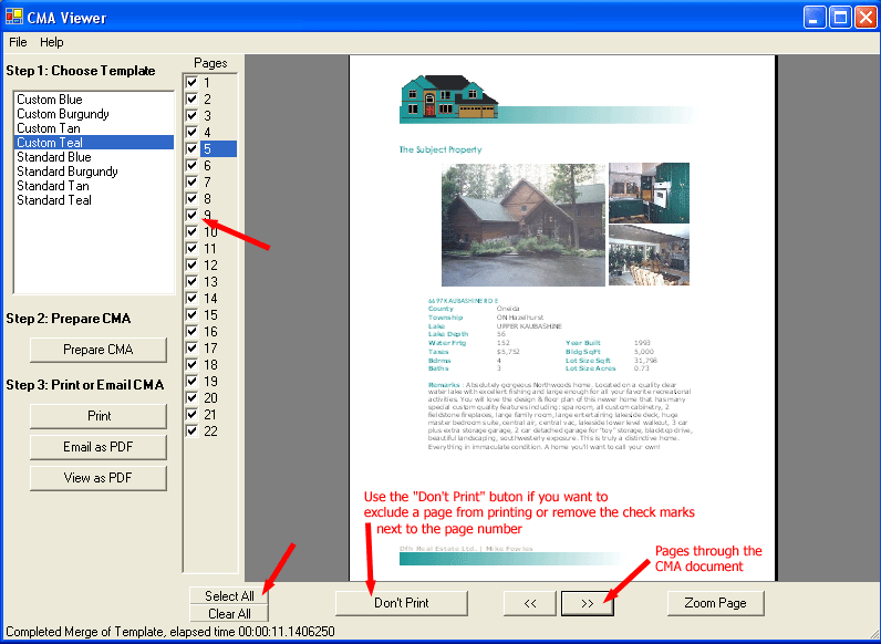 Step 2: After you have selected a template to use click the "Prepare CMA" button. The CMA will now be processed. Depending on the speed of your computer this may take between 15 and 45 seconds.